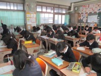 1組は総合の発表に向けて練習していました。2組は保健のテストを受けていました。3...
