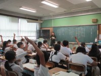 体育参観の団体演技にむけて,実行委員の人を中心に休み時間に練習を始めました。