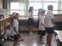 体育参観の団体演技にむけて,実行委員の人を中心に休み時間に練習を始めました。