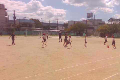 後半は,元プロサッカー選手やインストラクターの方から,サッカーを教わりました。また,一緒にサッカーを楽しみました。