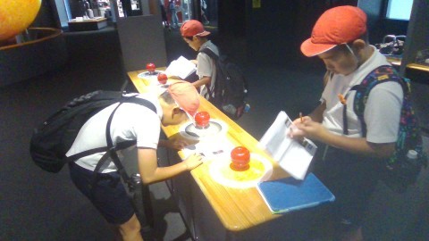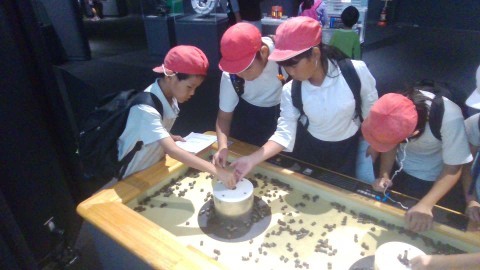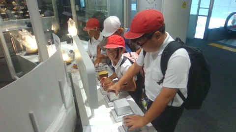 興味のある展示物を友だちとみています。楽しみながら科学の不思議を体験することができました。