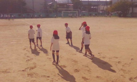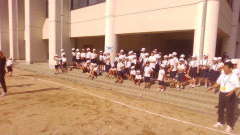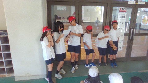 前期の児童会の子どもたちが中心となって逃走中を全学年で行いました。ハンターの先生も準備万端です。
