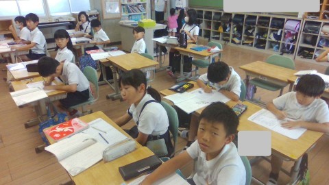 「ちいちゃんのかげおくり」の1場面と4場面を比べて,ワークシートにまとめました。