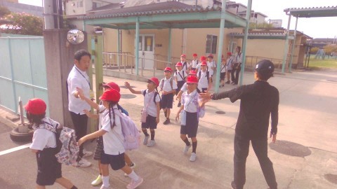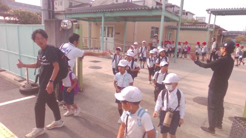 1・2年生の秋の校外学習は泉ヶ丘駅にあるビックバンに電車に乗って行きます。安全に気をつけて出発します。