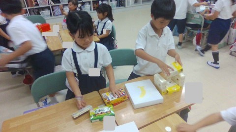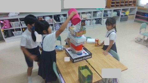 様々な形のはこを組み合わせて,かたちあそびをしました。