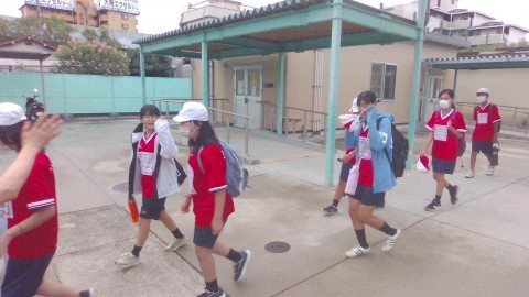 全員そろって,出発です。天気が心配ですが,これまでの練習を思い出し,力を出し切ってほしいと思います。学校から応援しています!