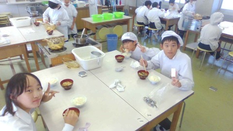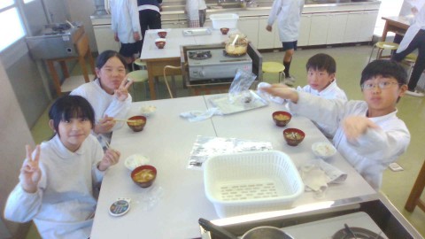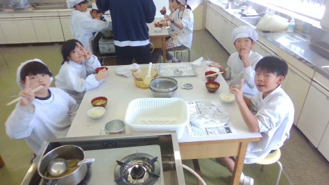 みんな自分たちで作ったご飯とみそ汁をおいしそうに食べていました。