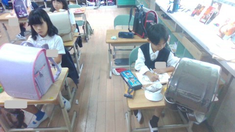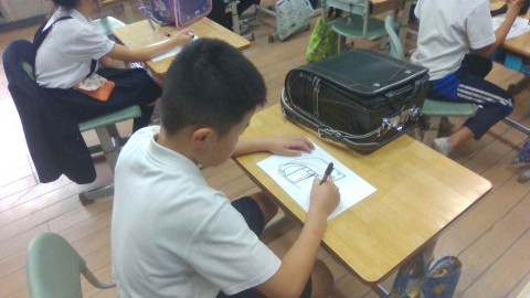 ランドセルを集中して描いています。細かいところまでしっかりと描くことができました。