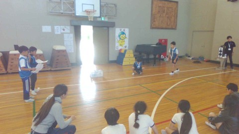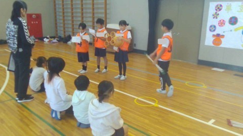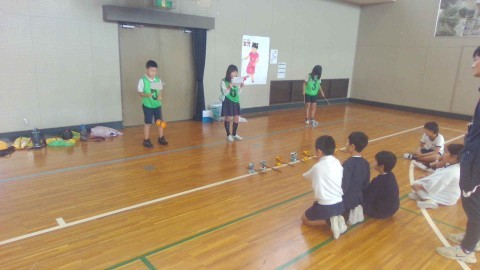 次に,世界の遊びを通して,子どもたち同士で交流しました。まずはやり方や手本を示しています。