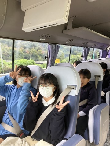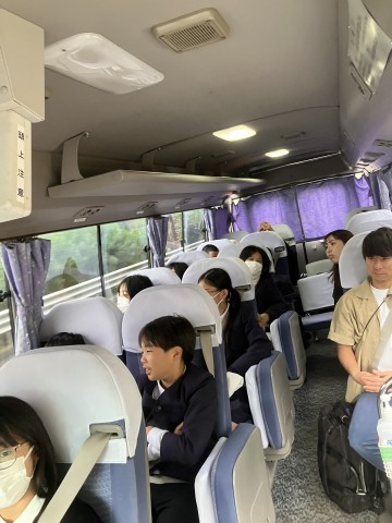 バスレクが始まりました。クイズをしたり音楽を聴いたりして、楽しく過ごしています。