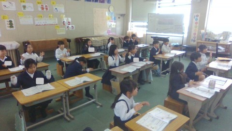 リズムをとりながら「かねがなっている」様子を意欲的に表現しました。