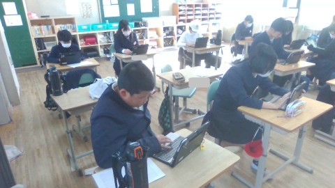 卒業文集の下書きをタブレットで行っています。よりよくなるように熱心に推敲しています。