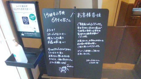 スターバックスの職業体験に参加しました。体験では、試飲の提供や黒板アートの制作など、実際の店舗で行われる仕事を体験しました。子どもたちは、接客などを通して「働くことの楽しさ」を感じることができました。最後には、ココアをいただき、心も体もほっとする時間を過ごしました。子どもたちを引き受けてくださり,ありがとうございました。