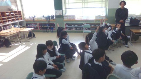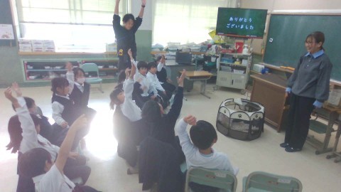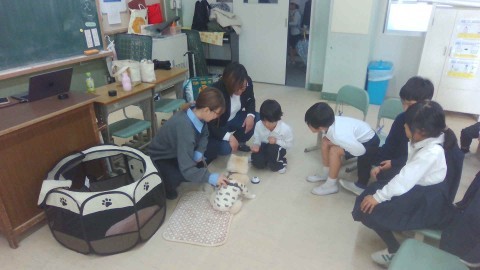 「生き物となかよくなろう」というテーマで,出前授業をしていただきました。小型犬の訓練などを体験する中で,犬のことがもっと好きになりました。出前授業をしていただきありがとうございました。