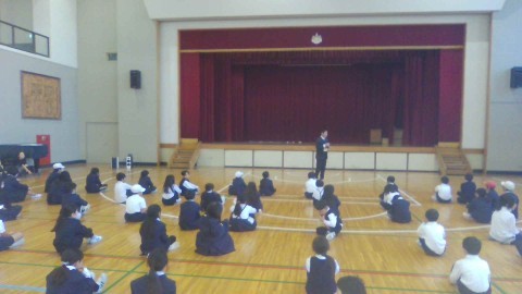 まずは元気に校歌を歌いました。校長先生からは,2学期のまとめに取組むことや当たり前(挨拶,言葉遣い,整理整頓,時間を守る)をきちんとすることなどの話がありました。また,生徒指導担当の先生から12月の生活目標「時刻を守ろう」について話がありました。