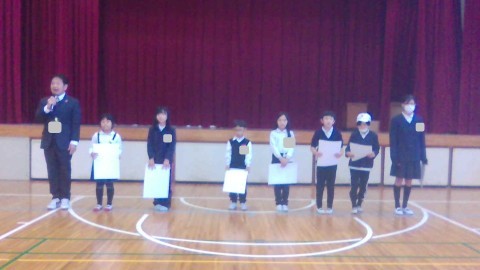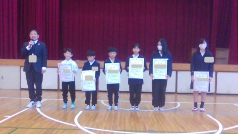 幼小中美術展と理科展の表彰がありました。表彰されてとても嬉しそうな姿が見られました。