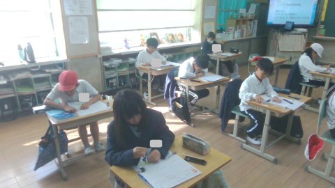 「円と球」のテストがありました。コンパスを使って,円や模様をかくことができました。