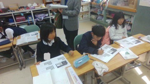 算数の「かけ算」の学習で研究授業がありました。子どもたちは箱につめられたまんじゅうの数をかけ算を用いて,進んで表現することができていました。