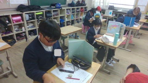 「垂直・平行と四角形」について復習をしています。垂直や平行四辺形のかき方を確認しながら学習に取り組むことができました。