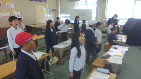 山をイメージしながら,「富士山」の歌を気持ちよく歌うことができました。