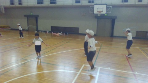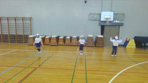 寒さに負けずに,リズムなわとびに挑戦しています。リズムよく飛ぶ姿がたくさん見られました。