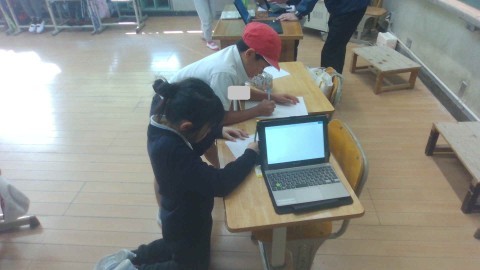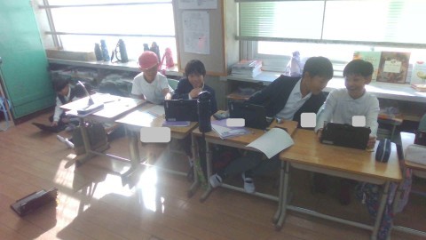 世界のステキを見つけようという学習を進めています。「あいさつ」や「食べもの」などそれぞれのチームでテーマを決めて,調べ学習を進めていくようです。