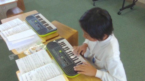 キーボードで『鉄腕アトム』をひく練習をしていました。