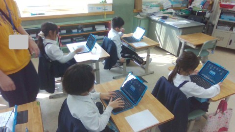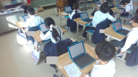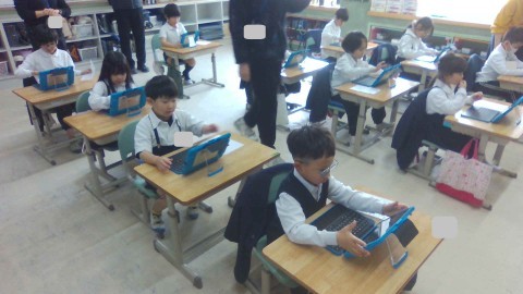 初めて見るiPadに,ワクワクしながらGIGA開きがありました。パスコードの入れ方やドリルパークを意欲的に行うことができました。授業で使うのが楽しみですね!