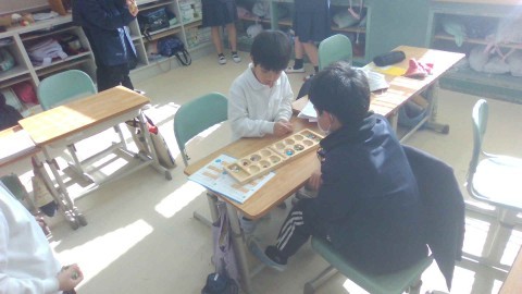異学年で協力しながら,トゥホやダカウ(羽けり),マンカラ,お手玉など世界の遊びを楽しむことができました。