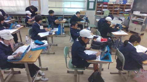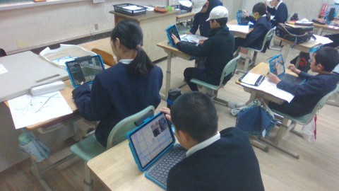 タブレットを使って,自分たちの街のユニバーサルデザインを進んで調べることができました。