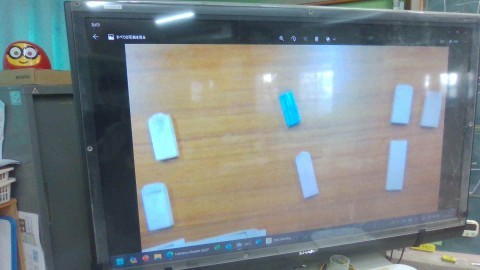 天びんを使って,重さランキングします。どのような方法が簡単で早く解決できるかを全体で話し合っています。