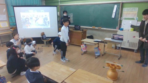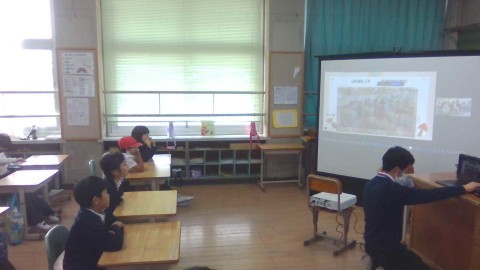 韓国ミナン小学校からは,少林寺小学校からプレゼントしたけん玉,コマなどに挑戦した様子や韓国のお正月「ソルナル」の挨拶,遊びなどを教えてもらいました。1年間の交流を通して,文化の違いや共通点をたくさん学ぶことができました。韓国ミナン小学校の皆さん,ありがとうございました。