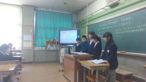 総合の発表がありました。テーマは「世界の国や地域のことを知ろう」です。あいさつや遊び,食べ物についてしっかりと発表することができました。