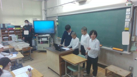 総合の発表がありました。すべての人にとって住みよい町するために,自分たちにできることをお家の人の前で発表しました。