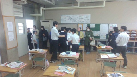 外国語の授業がありました。英語で堺のよいところを発表しました。また保護者の方にも英語でインタビューする姿も見られました。