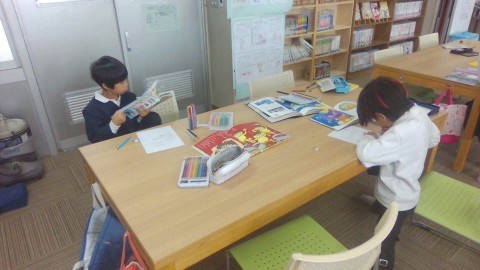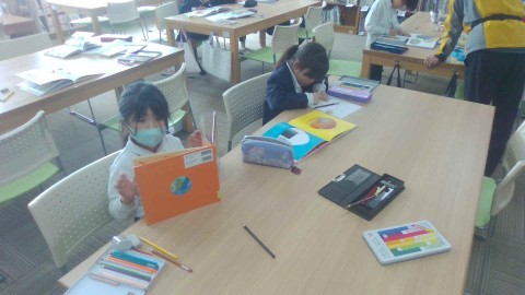 本年度,最後の図書の時間がありました。1年間でたくさんの本に興味をもち,進んで読書することができましたね!