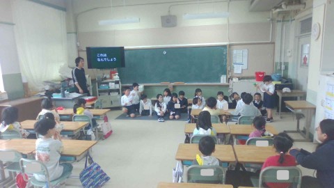 あすか保育園の年長さんが来てくれました。国語の時間に考えた「これは何でしょう」クイズを出題しました。保育園の子どもたちもとても喜んでくれました。