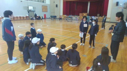 令和8年4月からの集団登校の5年生の新班長や副班長の自己紹介がありました。4月からは最高学年として,リードする姿を期待しています。