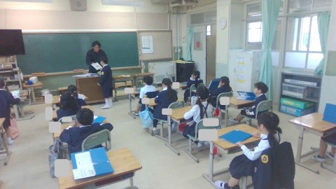 先生から配られたプリントをきちんとファイルになおしています。先生の話もしっかりと聞いています。