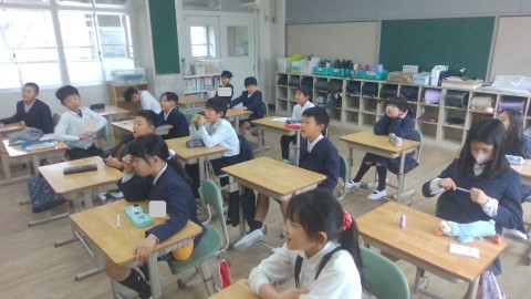 給食当番を決めました。担任の先生の好きな給食を当てるクイズを楽しみました。