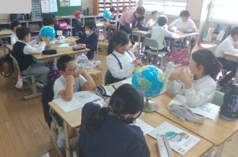 地球の様子について,地球儀を使って,調べています。初めて使う地球儀に興味津々のようです!