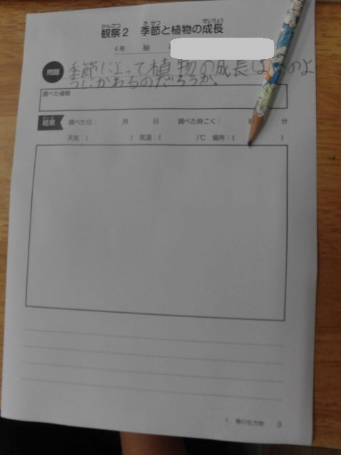 4年生 学級のようす 公開日 2026/04/16 更新日 2026/04/16 3・4年生 4月16日(木) 理科の「春のいきもの」の学習です。今日は,1年間のかんさつのしかたを先生が説明しています。「季節によって植物の成長はどのようにかわるのだろうか」を考えます。「季節と植物成長のワークシート」をもって校庭に出向き「桜の木」の観察をしています。 +7