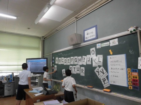5年生 2 外国語 公開日 2026/04/21 更新日 2026/04/21 5・6年生 4月21日(火)外国語の時間です。今日のめあては「アルファベットにしたしもう」です。こどもたちで協力して,アルファベット文字を並べていました。そのあと,アルファベットのゲームに挑戦です。 +3