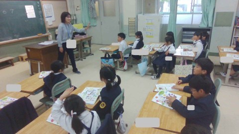 音楽の授業が始まっています。校歌を歌うなどして楽しみながら活動しました。