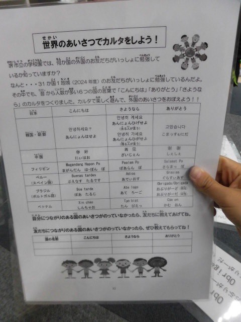 トラヂ(たてわり活動) 1 公開日 2026/04/23 更新日 2026/04/23 トラヂ 4月23日(木) トラヂタイムです。今日は「世界の文化に関するクイズ」と「世界のあいさつカルタ」に取り組みます。1班の様子です。1年1組で活動しています。 +5