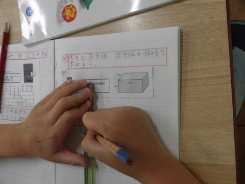 めあては「大きな直方体,立方体の体積を求めよう」です。