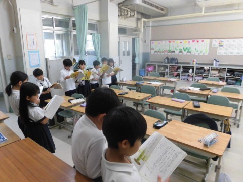 2年生 国語 公開日 2026/04/28 更新日 2026/04/28 1・2年生 4月28日(火) 「ふきのとう」の学習です。今日のめあては,「音読会をしよう」です。ちょうど音読会が始まりました。「ゆき」「たけのは」「はるかぜ」「たけやぶ」などの役割に分かれてよい姿勢で音読発表会をしました。 +7