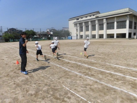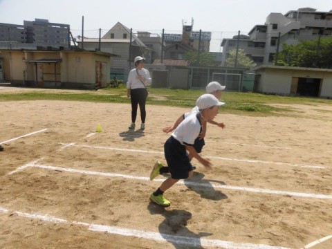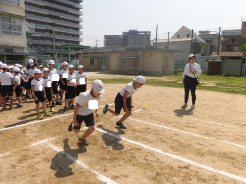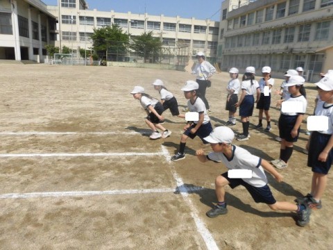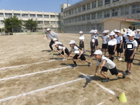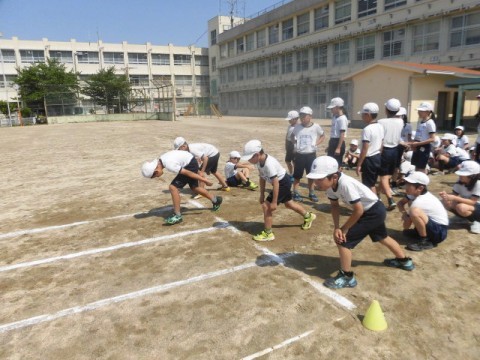 4年生 体育 公開日 2026/04/28 更新日 2026/04/28 3・4年生 4月28日(火)3年生と4年生が合同で体育を行っています。50m走に取り組みます。「スタートダッシュが大切です」と先生がみんなにアドバイスをしていました。スタートダッシュのあと,タイムを計り,記録をとっていました。 +7