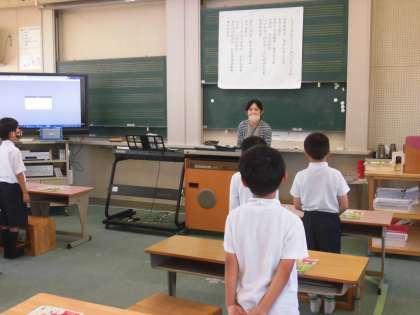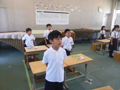 少林寺小学校の「校歌」を練習していました。姿勢も歌声も素晴らしかったです。