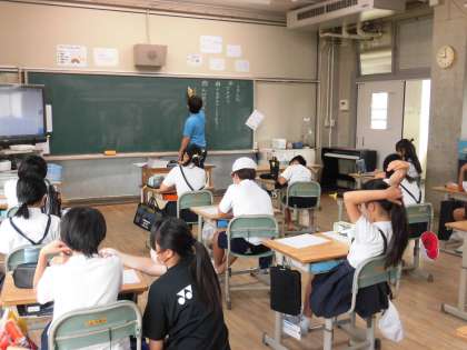 セネガルについて調べたことを発表していました。職場体験の中学生も活躍してくれていました。